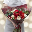 Букет амариллисов, роз и эвкалипта