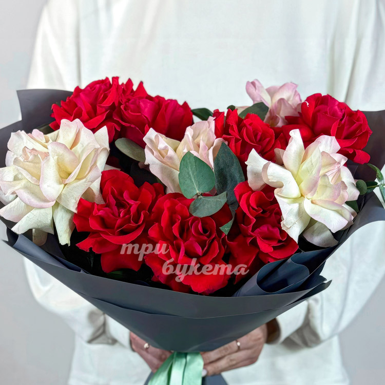 Букет из 11 красных и розовых французских роз