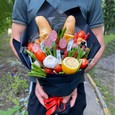 Букет из винограда, яблок и цветов