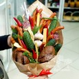 Букет с булками, колбасой и овощами