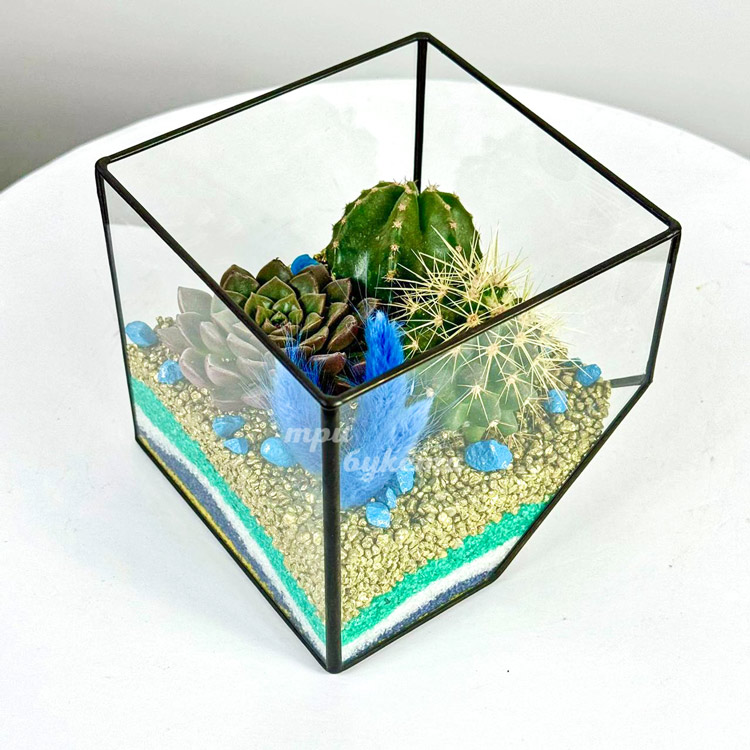 Флорариум с кактусами, суккулентом и лагурусом