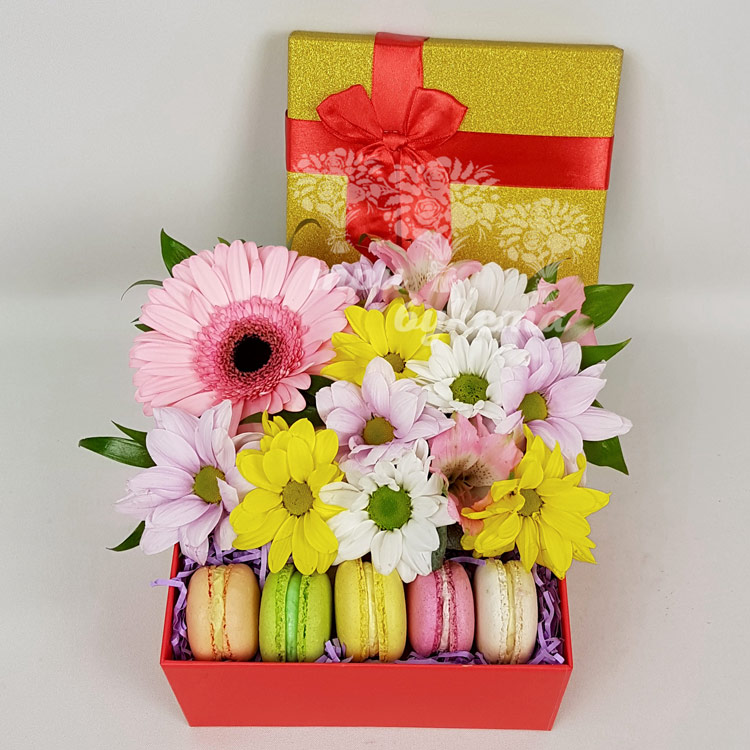 Композиция с макарунами и цветами