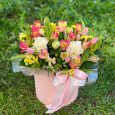 Композиция ярких цветов в шляпной коробке