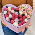 Корзина клубники в шоколаде с цветами