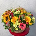 Корзина кустовых роз и тюльпанов