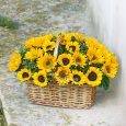 Корзина ярких хризантем, гербер и роз