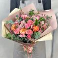 Пионовидные розы и эустомы в вазе